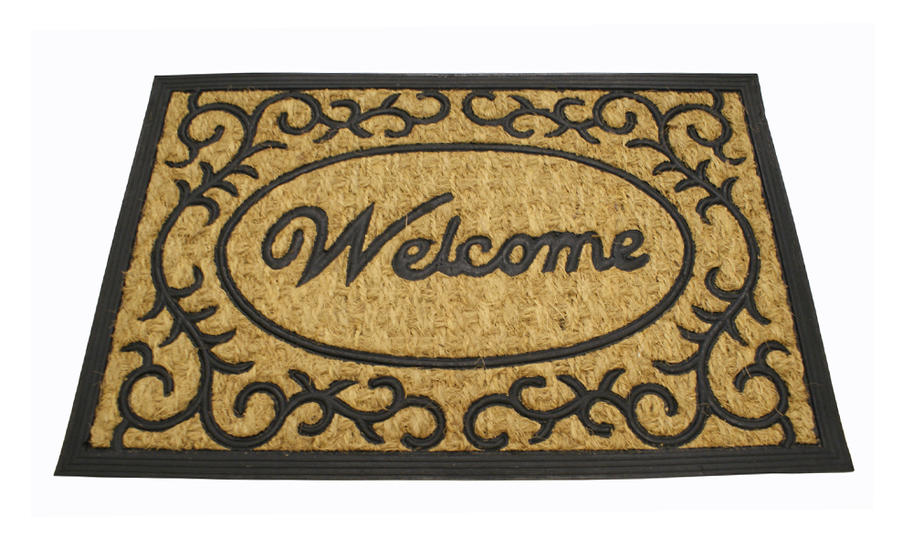 - £6.98 for rubber, coir coconut rug - floral welcome, floral or angled squares and stripes (30% off)