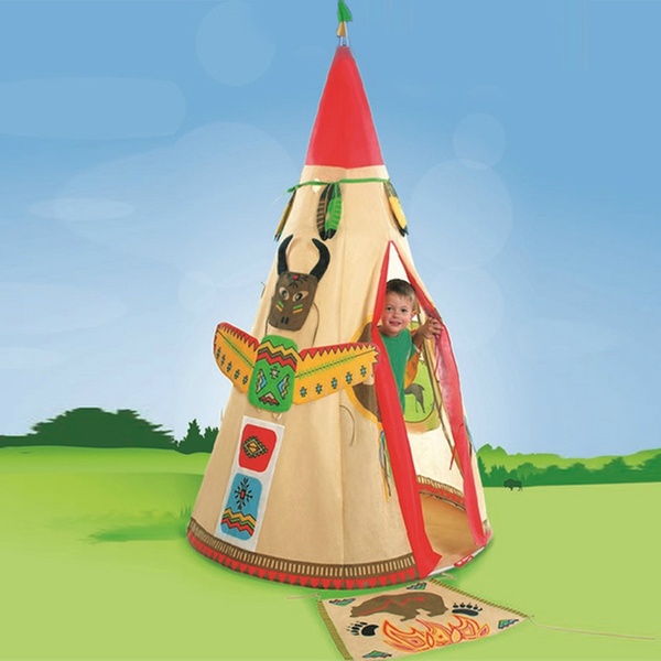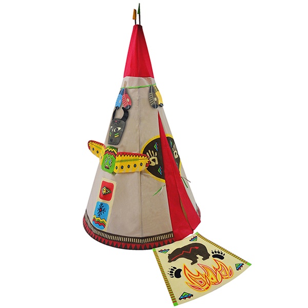 - Fabric teepee with Native American-style floor mat for creative play indoors or outdoors