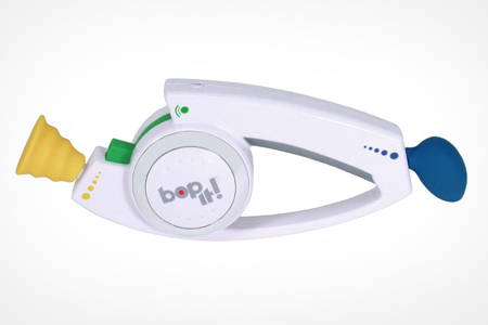 Developed to improve reactions while having bags of fun, Bop It! is a fast paced game where players have to follow verbal instruction to bop it, twist it, pull it and shout it before the time runs out. Further skill levels are unlocked as performance improves, and a Party Bop mode enables users to play with their knees, elbows, and hips to add a new level of physicality.