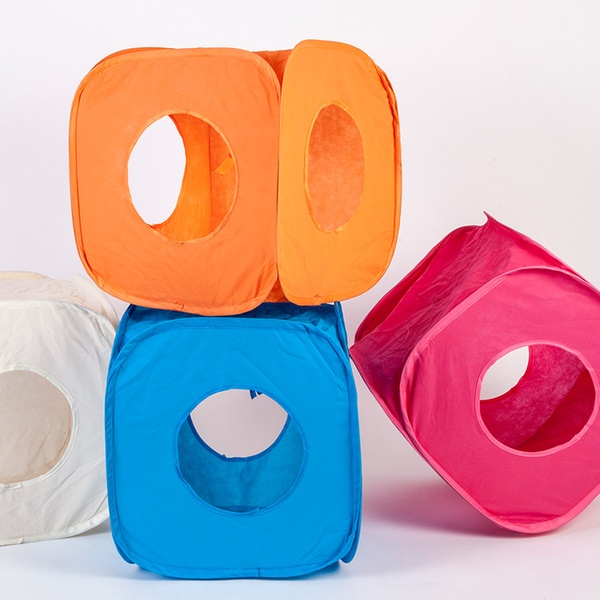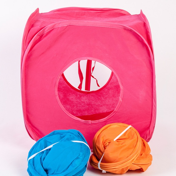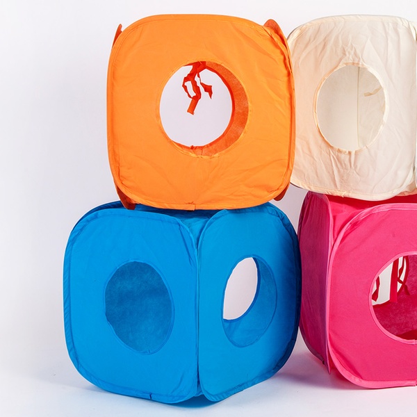 Cats and kittens will have the time of their lives with this play cube that pops up into shape once opened and features three entrances
