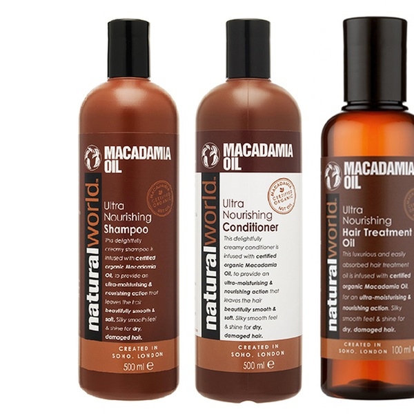 Natural World Macadamia Hair Treatment Oil + Shampoo and Conditioner Set