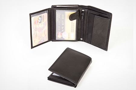 These fine black leather wallets are made by Italian designer Bruno Antonini and come in five different styles. Each wallet features card slots, window pockets and zipped compartments for storing coins and cards.