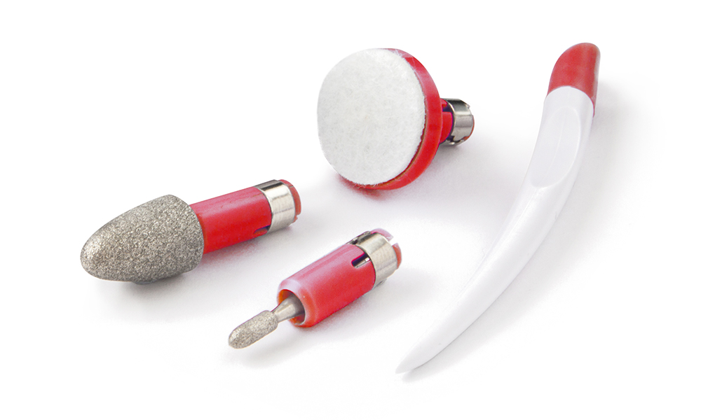 - Five professional attachments: polishing disk, thick sharp point, fine grain cone, shaping disk and hoof stick