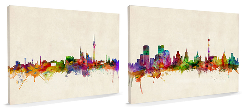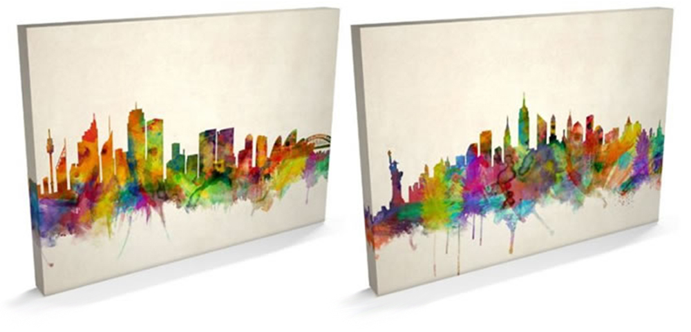 Choose from the following options for city skyline canvas prints, distributed by Maps International: