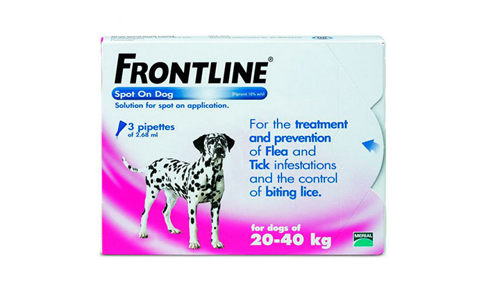 - Large Dogs – 20 to 40 kg – (2.68 ml; 268 mg fipronil)