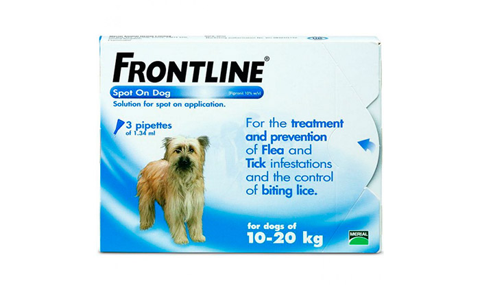 - £15.49 for a 3-pipette pack of Frontline Spot On for a medium dog