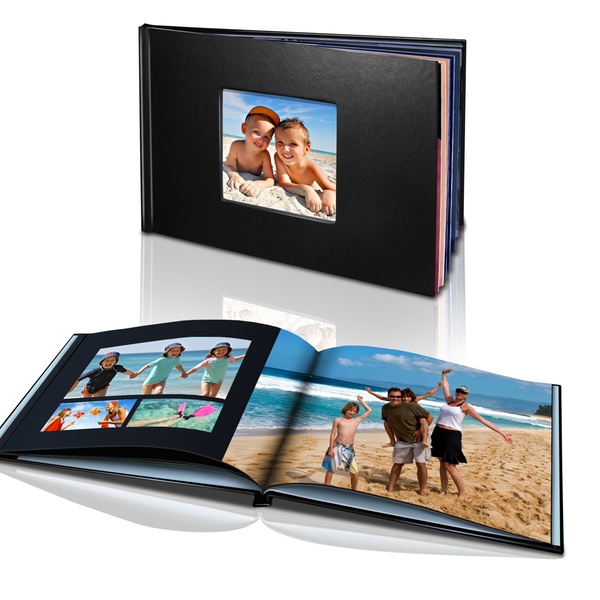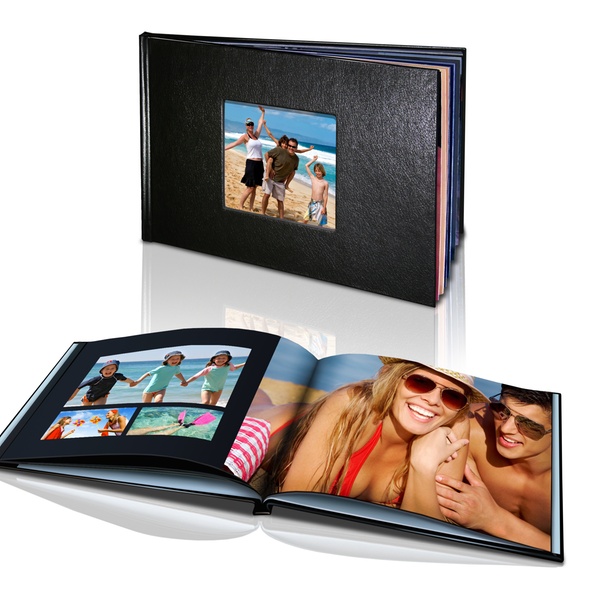 Choose from the following options for a personalised hard-cover leather-look photo book, distributed by Mini Box: