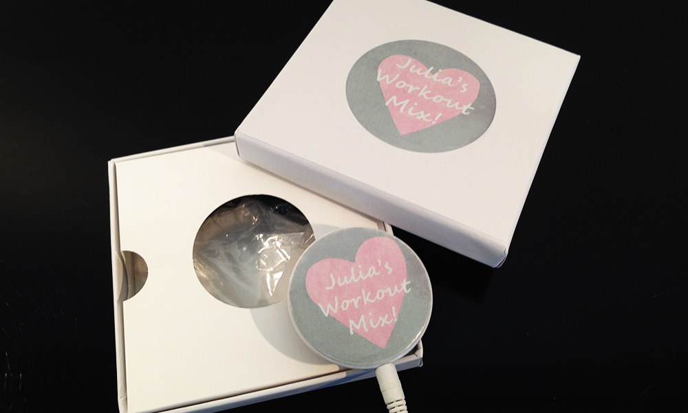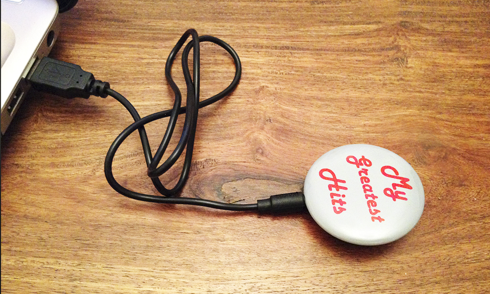 Choose from the following options for a personalised MP3 pin-badge player, distributed by MixPixie: