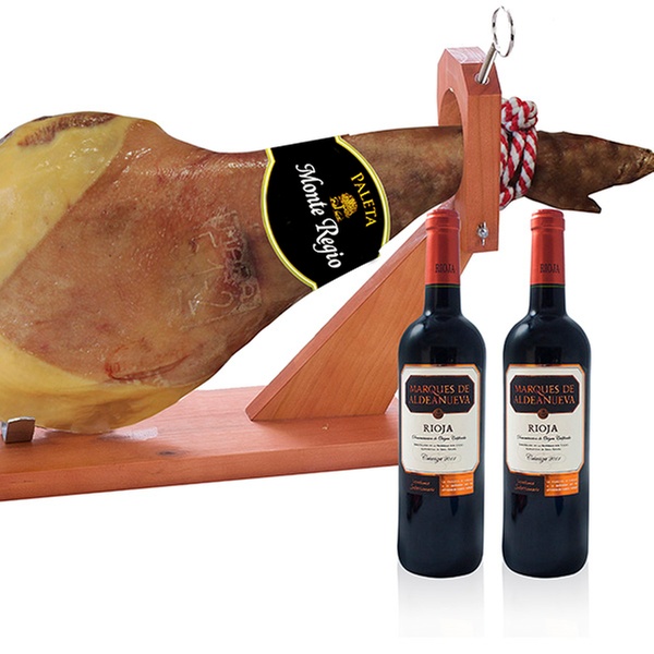 - £58.99 for a 4kg Iberian ham shoulder with two Rioja wines (65% off)