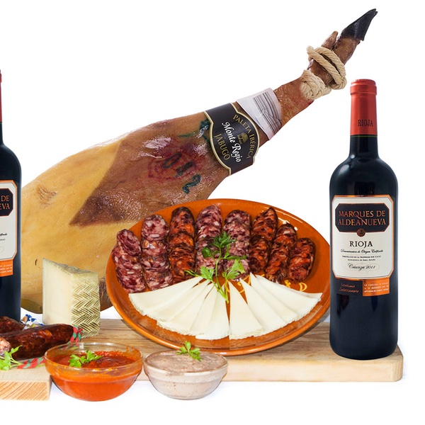 Iberian Acorn Ham, Rioja Wine, Meats and Cheese Selection