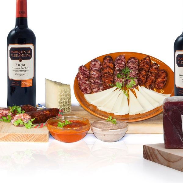 Iberian Ham, Rioja Wine, Meats and Cheese Selection