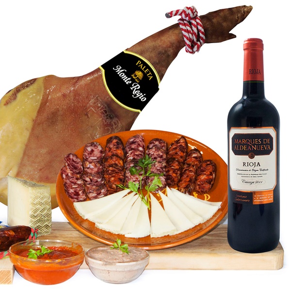 Iberian Ham Shoulder, Rioja Wine, Meats and Cheese Selection