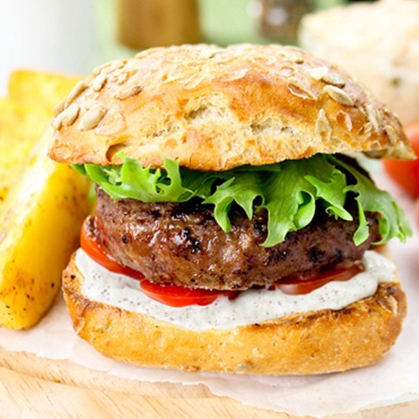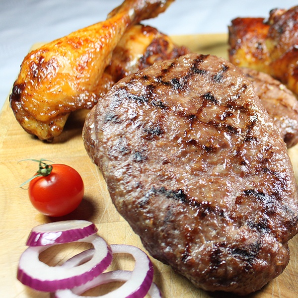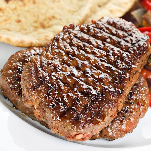 - Four 4oz lean steak burgers