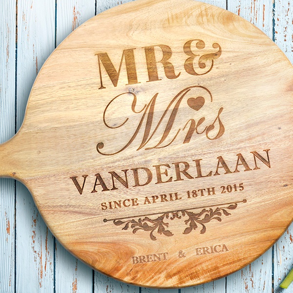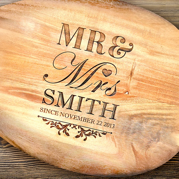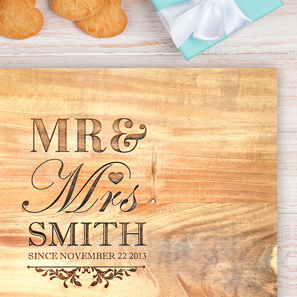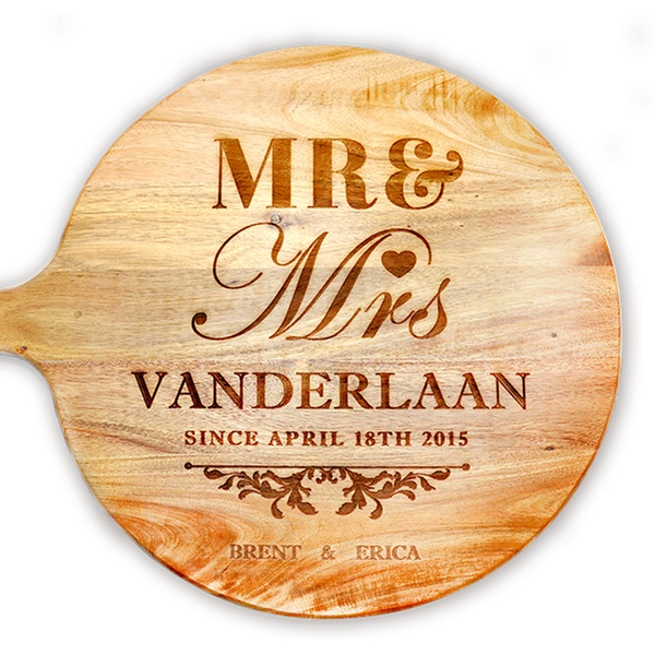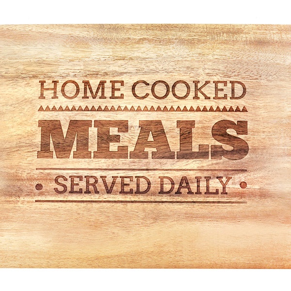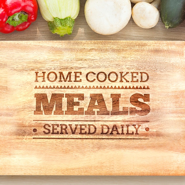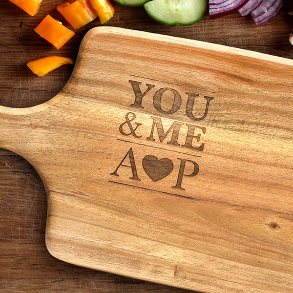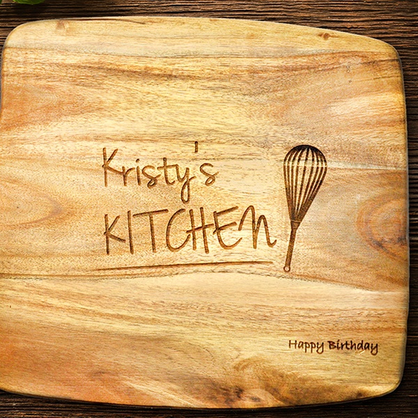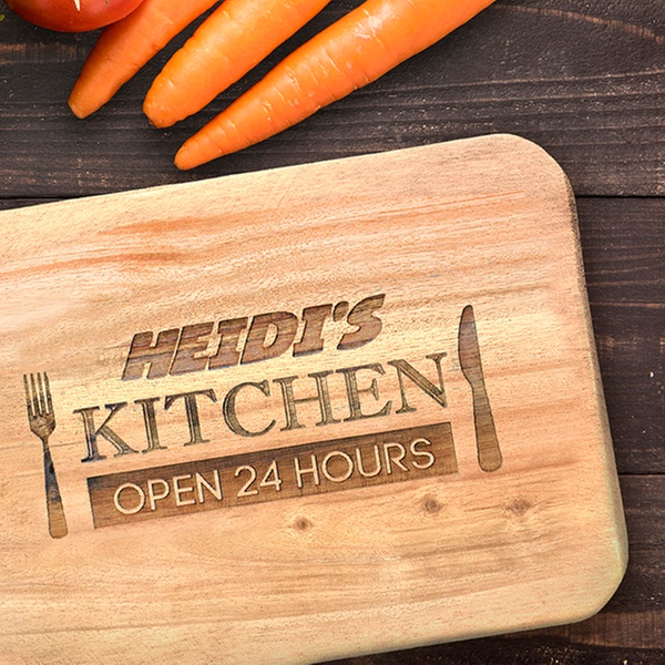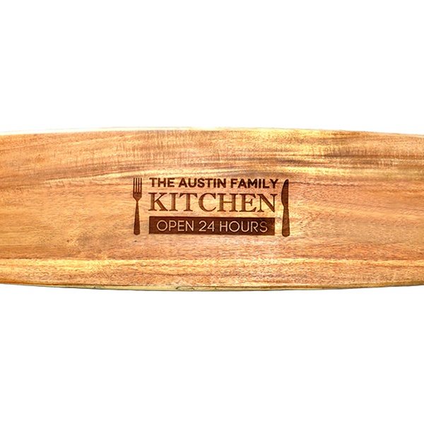 Create a custom acacia wood cutting board for your kitchen with your own design or choose from over 30 pre-designed layouts