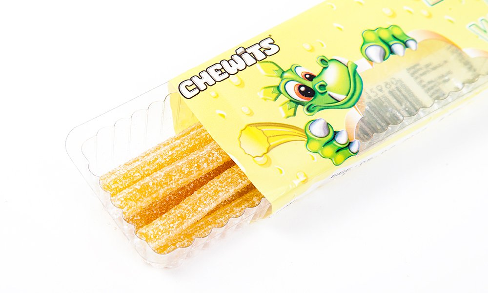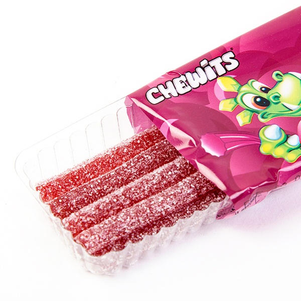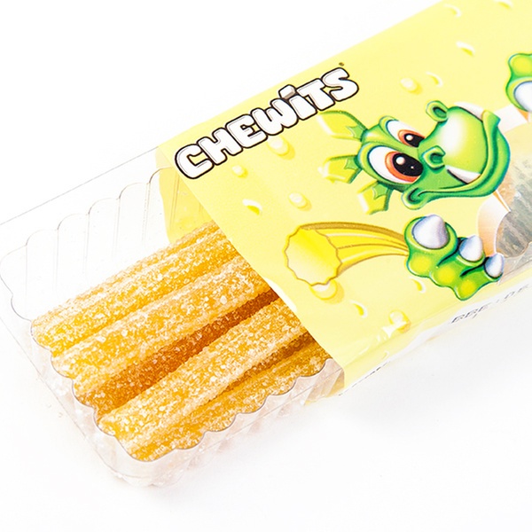 These Chewits mini whips come in individual 18g packets for a sweet treat to tuck in pockets or lunchboxes. The chewy laces are available in lemon or raspberry flavour, or both, for those that don't want to pick a side.