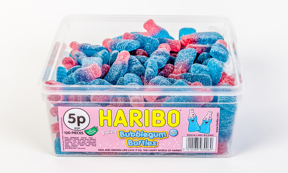 - 998g tubs of Haribo sweets