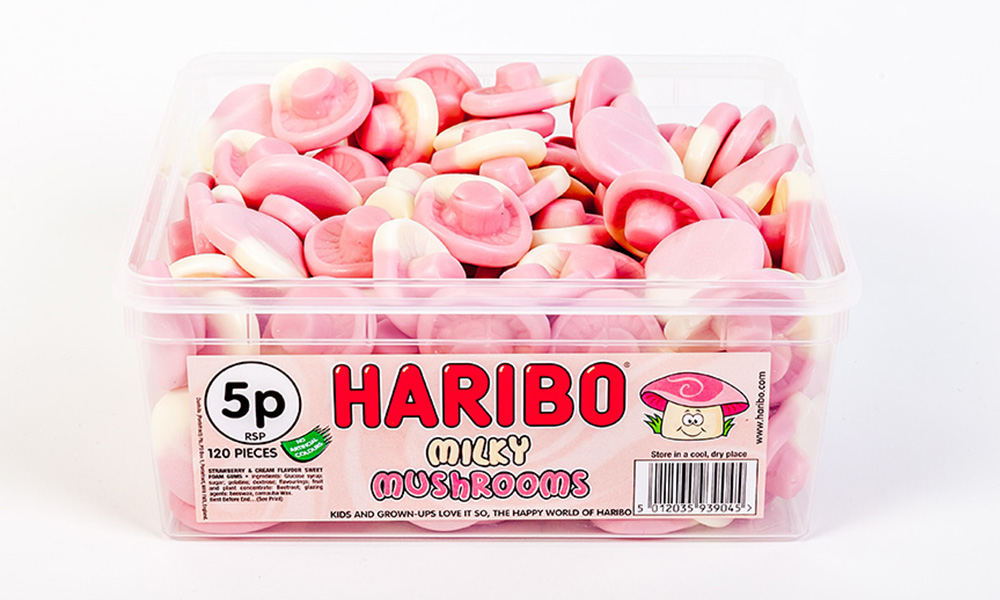 Famed confectionery artisans Haribo launch three brand new flavours in the UK. 998g tubs of Milky Mushrooms, Bubblegum Bottles or Mini White Marshmellows flavours are available in options of one or two tubs. Four or six tubs are also available, with these options providing a random selection of the aforementioned flavours.
