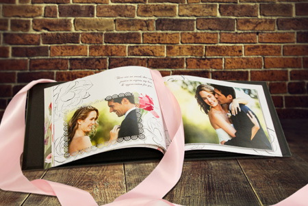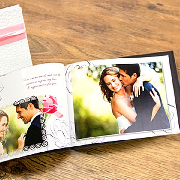 These personalised wedding books have room for as many photos as can fit, and are available in cream or black, wrapped with a lace ribbon. With 100s of backgrounds to choose, including specific wedding themes, the best memories can be selected and produced within 26, 40 or 60 special pages.