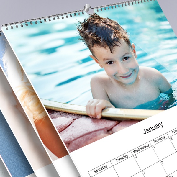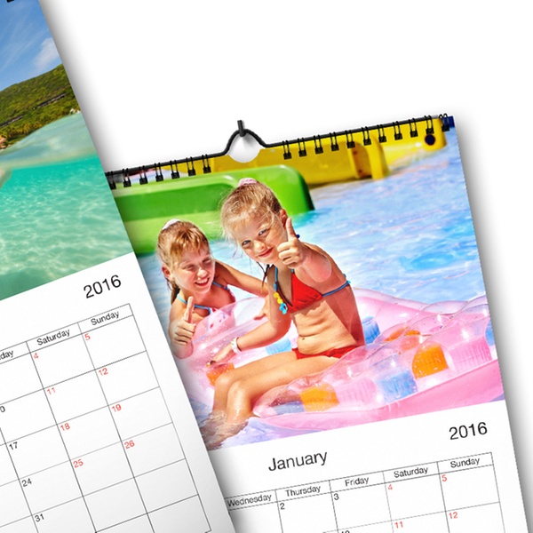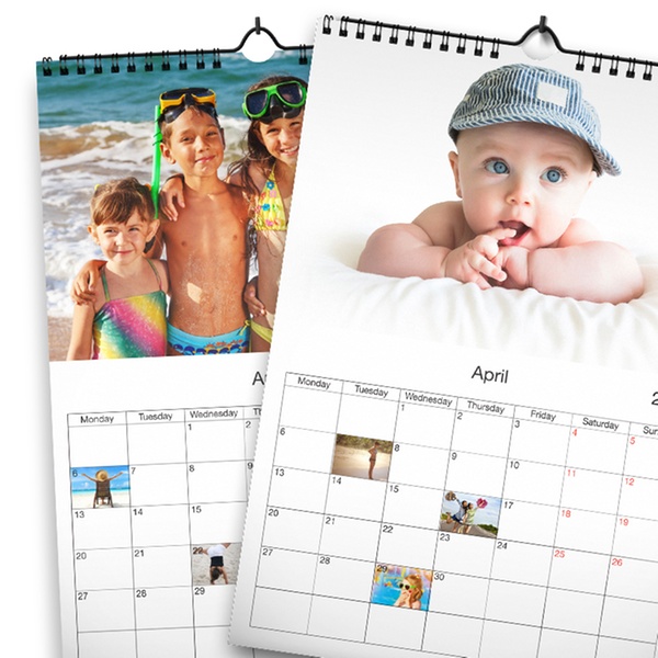 This A4-sized, top-folding portrait calendar features at least 13 images of choice, uploaded and arranged through the easy-to-use website