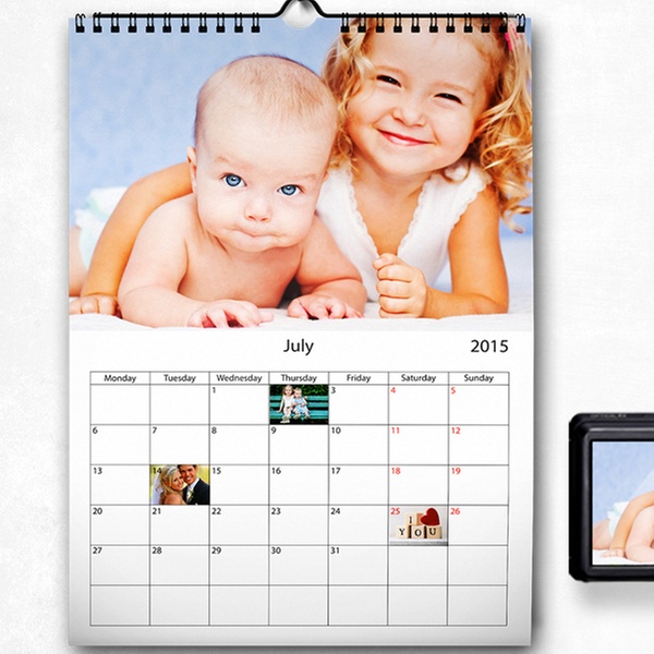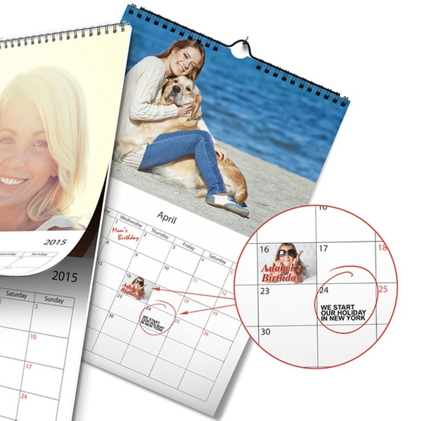 This A4-sized, top-folding portrait calendar features at least 13 images of choice, uploaded and arranged through the easy-to-use website