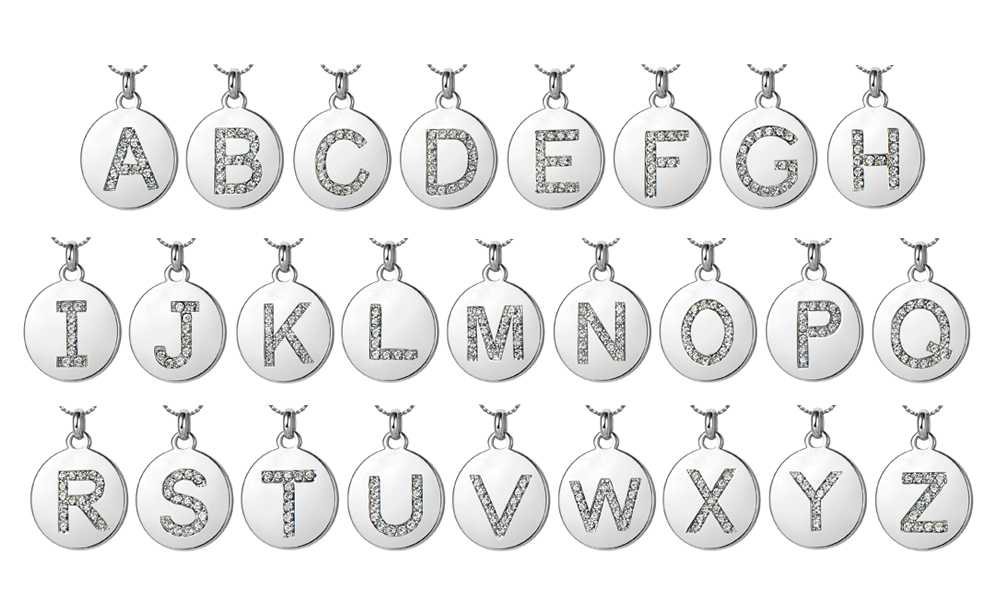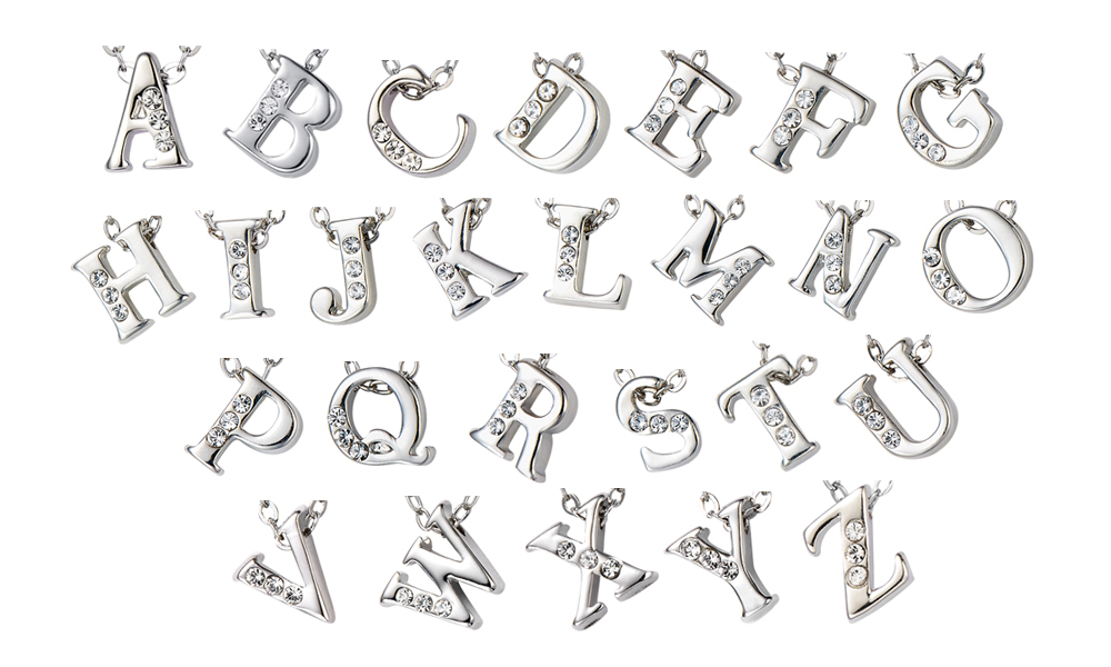 Choose from the following options for initial necklace made with SWAROVSKI ELEMENTS, distributed by Neverland Sales: