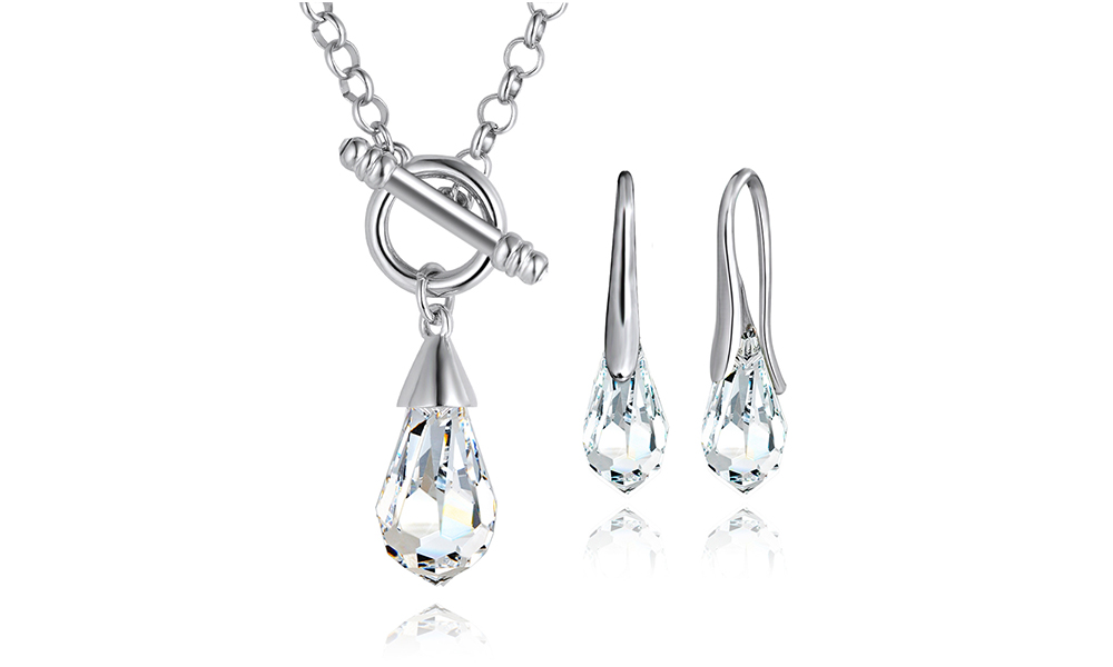 These sparkling jewellery sets feature a delicate crystal drop design made with SWAROVSKI ELEMENTS. Exuding timeless style, the set contains a pendant necklace and stud earrings set to dazzle from all angles.