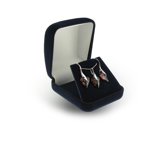 Burgundy earrings and necklace in a gift box