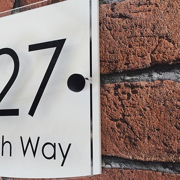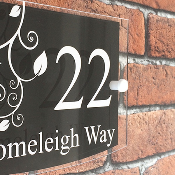 These house signs can give a modern first impression to homes and can be personalised alongside a floral design in white or black