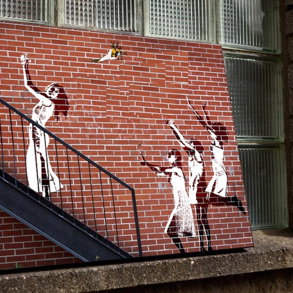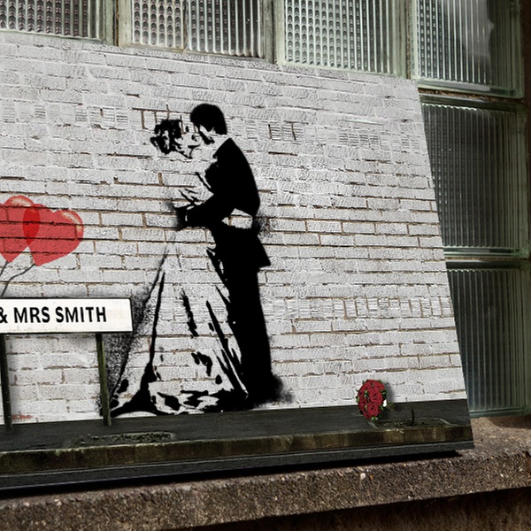Choose from the following options for a Banksy wedding-themed canvas, distributed by You Frame: