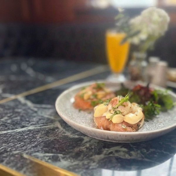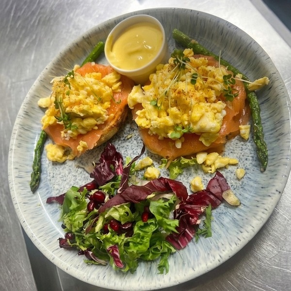 Eggs Royal – Salmon, poached eggs and hollandaise sauce served on toasted brioche bread