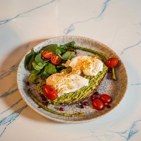 Avocado Heaven – Smashed avocado, eggs, cherry tomatoes served with seasonal herbs and toasted sourdough