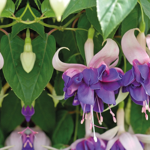 Featuring frosted, marbled and stripy blooms, these giant fuchsia plants can make a nice and colourful focal point in a garden