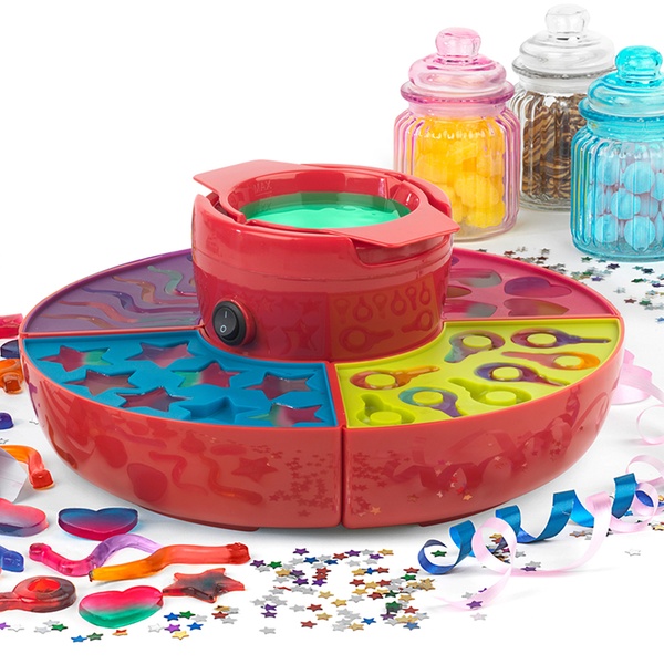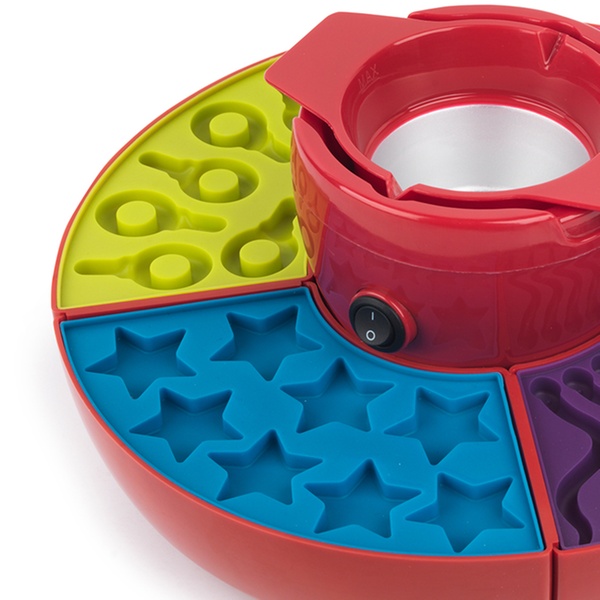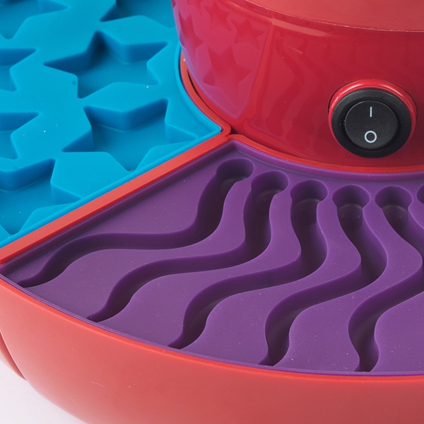 - Simply melt a gelatine mixture in the electric pot in the centre of the tray, pour the mixture into the shaped moulds and then wait for the treats to cool before tucking in