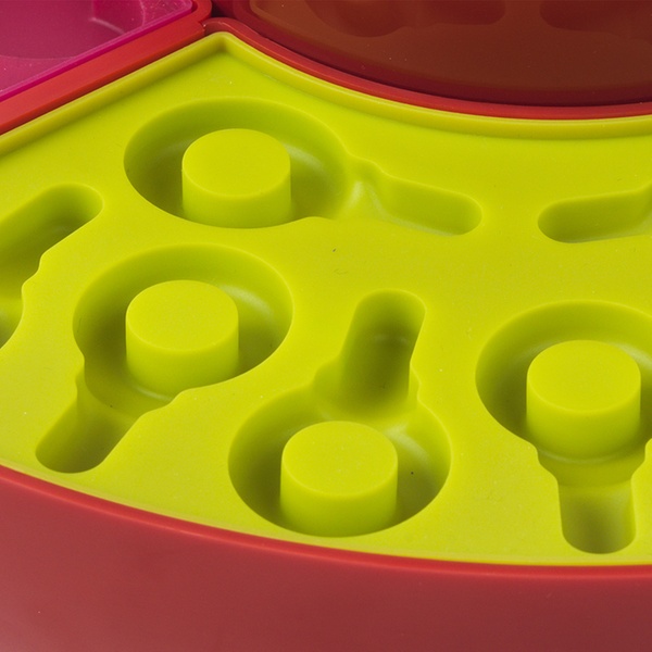 - Comes with a four-section tray and four silicone candy mould trays with a variety of shapes