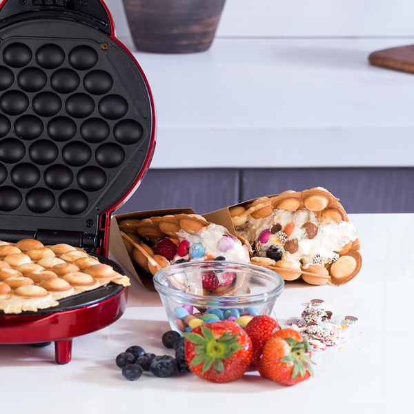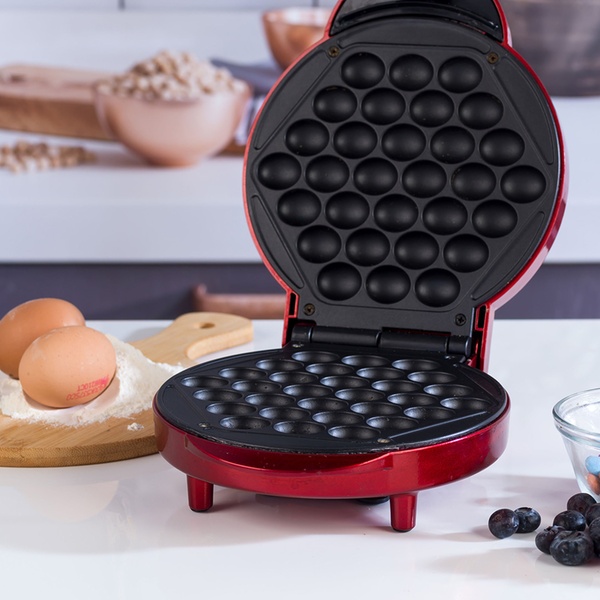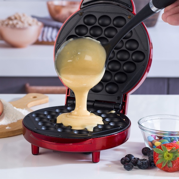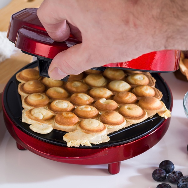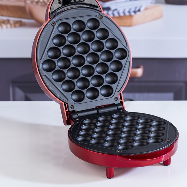 Featuring rapid heat-up time along with power and ready indicator lights, this bubble waffle maker helps create baked treats in minutes