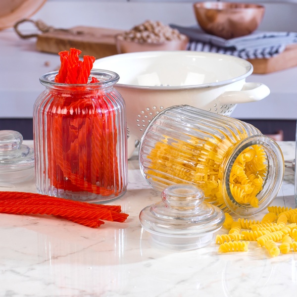 Ideal for sweets, chocolate and treats, these candy jars feature a rounded glass head and silicone stopper for safety