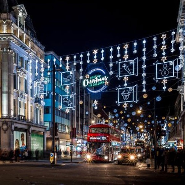 The tour showcases London's most famous landmarks and locations, including spectacular displays on Oxford Street and the giant Christmas tree in Trafalgar Square.
