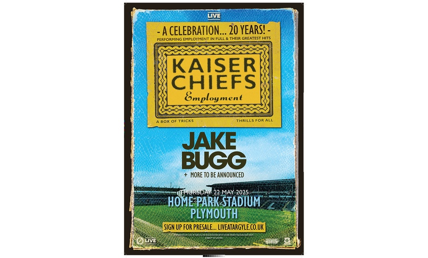 Rock out at LIVE at Argyle! Kaiser Chiefs headline this brand-new festival, joined by Jake Bugg for an epic night of music at Home Park