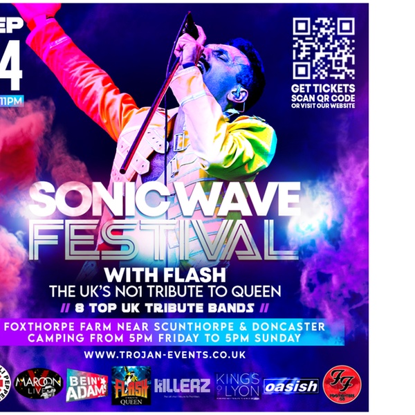 Experience Sonic Wave Festival 2024 on September 14th with Queen (Flash), top tribute bands, great food, a licensed bar, and camping options—an unforgettable all-day music celebration!