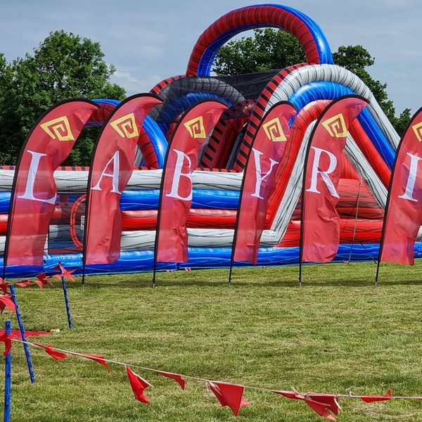 The Labyrinth Challenge was designed to be the UK's longest continuous inflatable obstacle course. Divided into five distinct themed areas, including Lava, Jungle, Ocean, as well as Combat and Toxic Zone, the elaborate 1000ft set-up requires participants to get to the other end as soon as possible, but only if this is what their idea of fun dictates. The labyrinth boasts more unique challenges every year which can be explored at a slower pace. Participants can complete the course as many times as they like during their session.