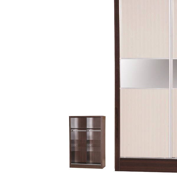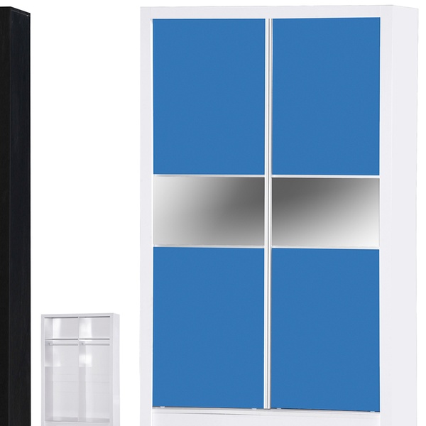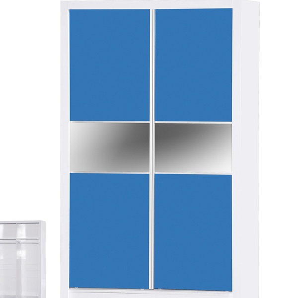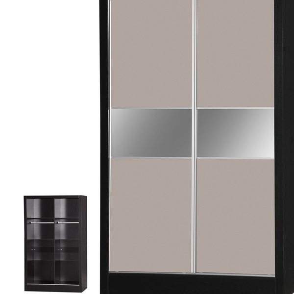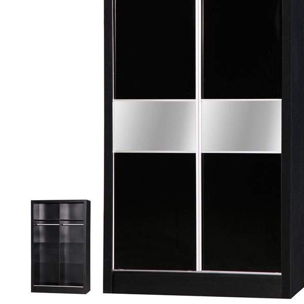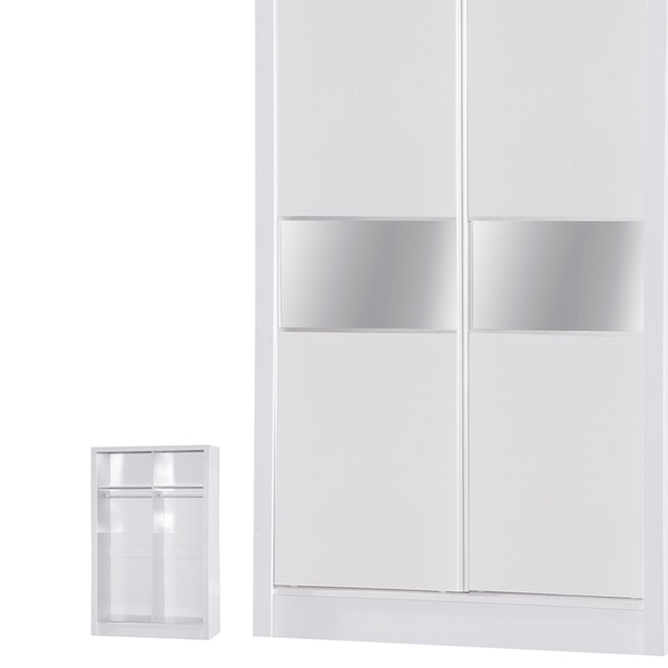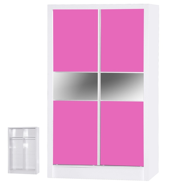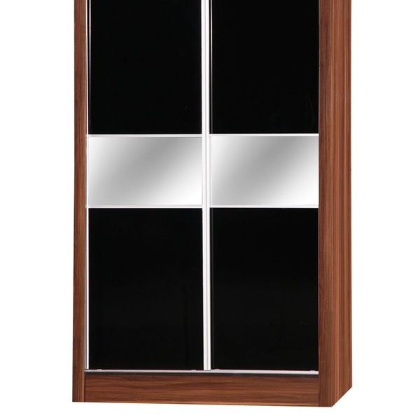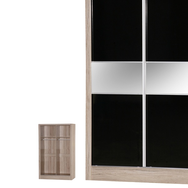 Combining modern design with practicality, this wardrobe features high gloss finish and wood-effect sides, and two sliding mirrored doors