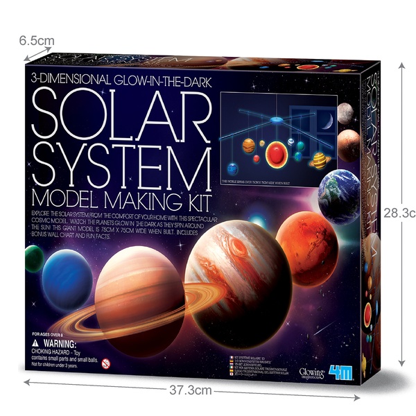 Discover the wonders of the solar system at home with this 4M 3D glow-in-the-dark cosmic model, featuring spinning planets, a bonus wall chart, and fun facts