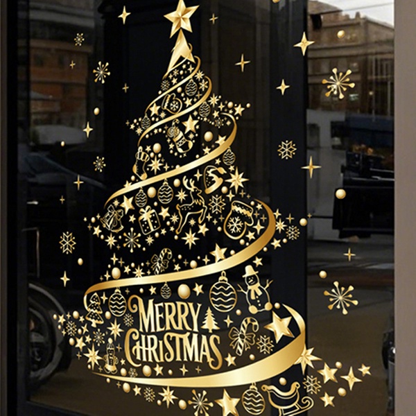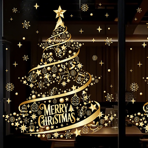 Add a festive touch to windows with these golden Christmas tree stickers, perfect for holiday decoration