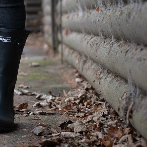 These rubber Wellington boots, featuring a cleated anti-slip rubber sole tread, are tested to be waterproof up to the topline