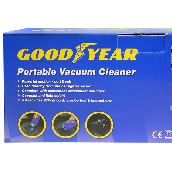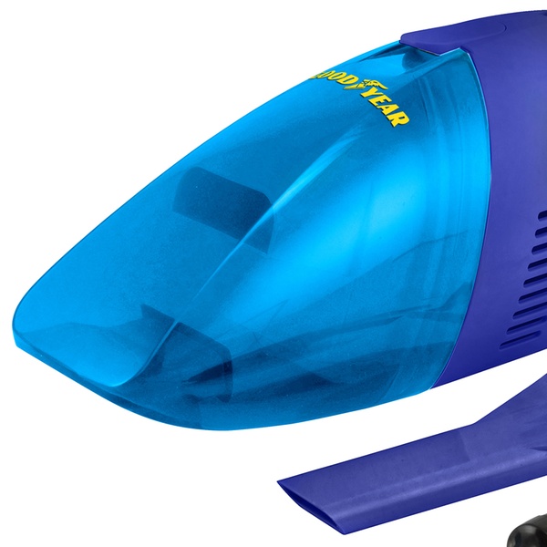 Lightweight and portable, this Goodyear car vacuum cleaner can work directly from the vehicle’s cigarette lighter