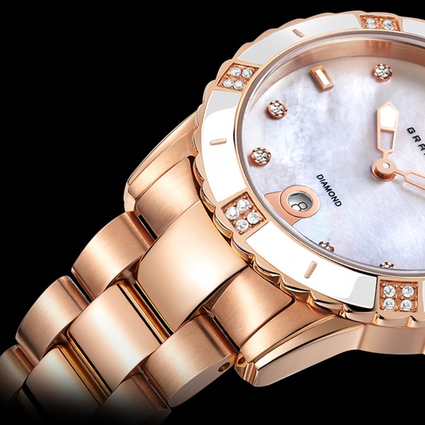 - White or black mother of pearl dial