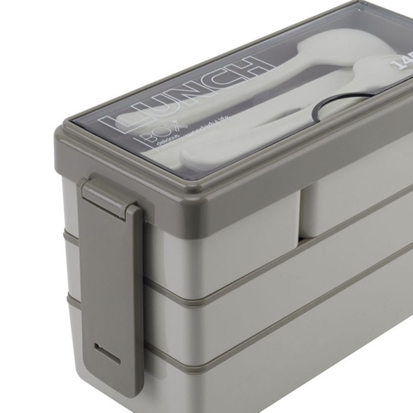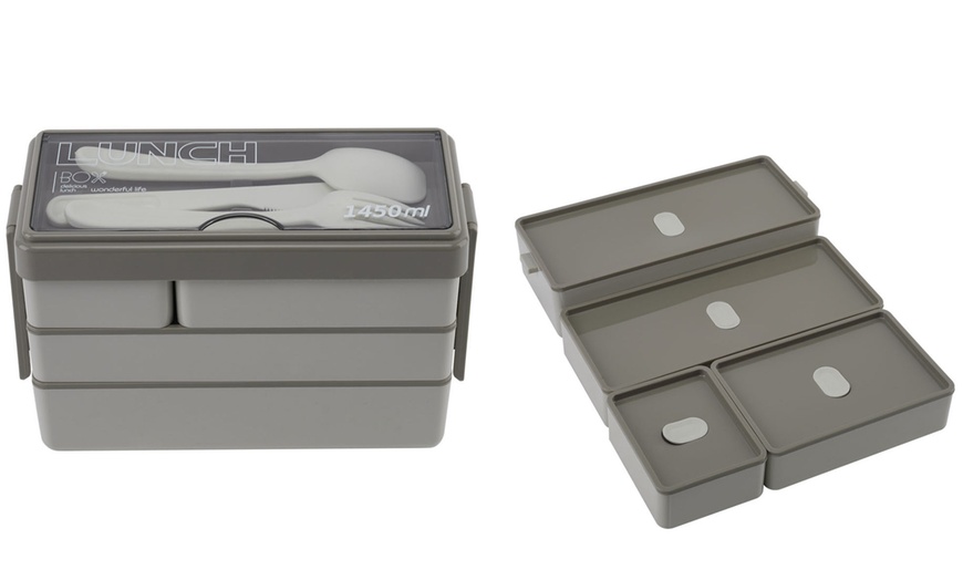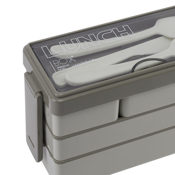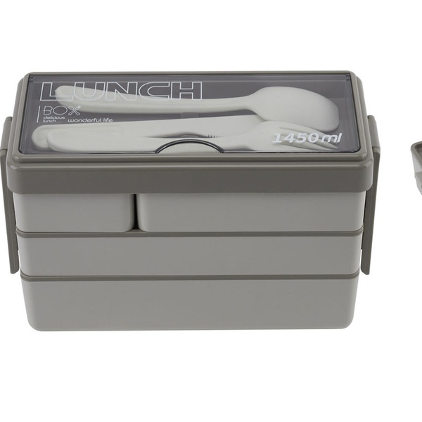 Today's Groupon offers Grey Dual-Layer Plastic Bento Lunch Box with Cutlery, distributed by Living And Home Limited.