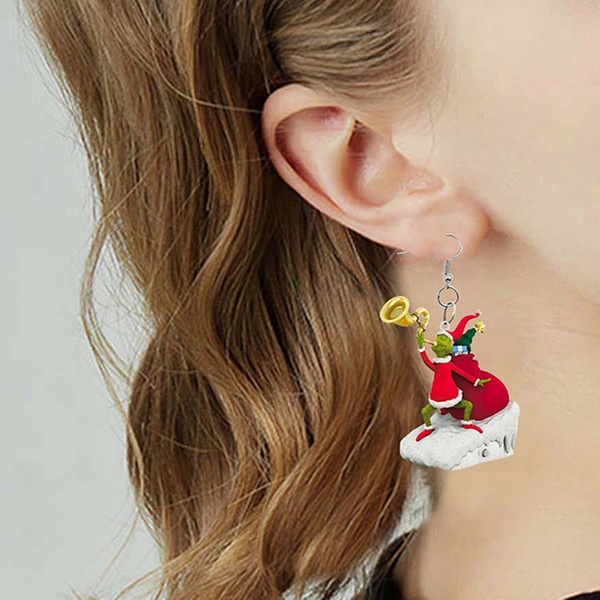 - Includes multiple earrings themed around Christmas characters and festive elements.