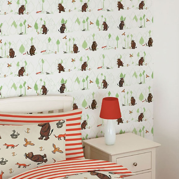 Ideal for use in bedrooms, this multicolour wallpaper features Gruffalo style; available in packs