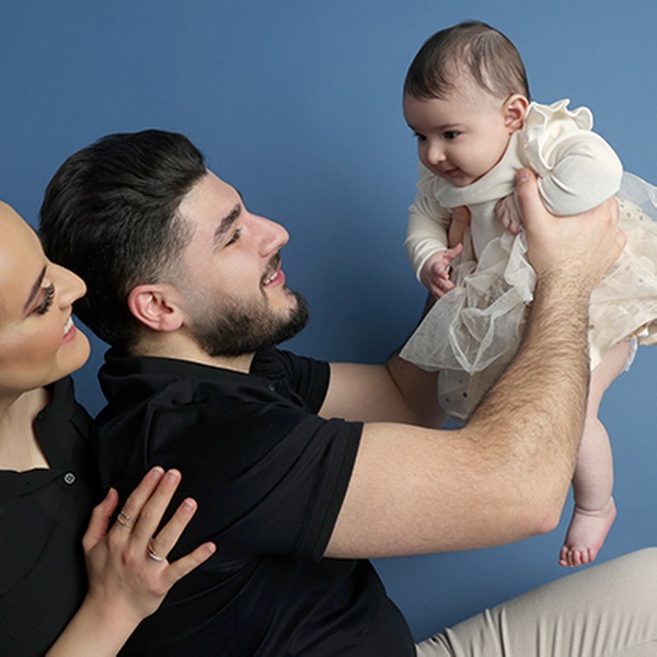 Family studio photoshoot with large print